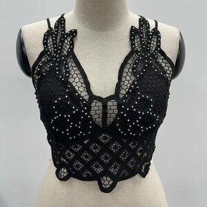 Embellished Beaded Crochet Lace Bralette Top Festival Aerial Dance Costume OS