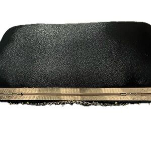 Elegant black and gold clutch with intricate embellishments. Perfect for evening events.