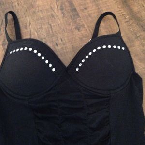 This is a TOP not lingerie. "Diamonds" adorn the preformed, padded cups (no bra needed!) with ruching down middle and adjustable straps. Never been worn. I received as a gift and it's just not something I see myself wearing. I removed the tag when I was planning to wear it because it was stiff and itchy and then decided against it.