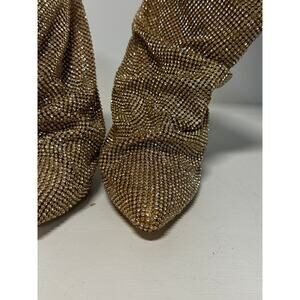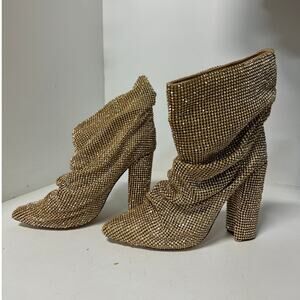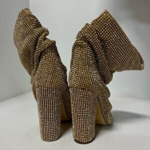 Embellished Crystal Pull On Pointed Toe Block Heel Ankle Boots Gold Women Size 8