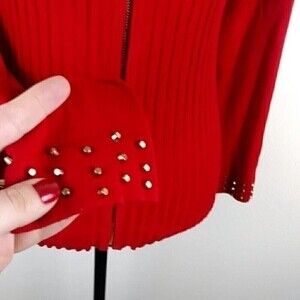 Fontana Zipper Cardigan Jacket, Ribbed Sweater, Spike Stud Detailing, Size Medium, Stretchy Zip Up Sweater Jacket, Long Sleeves, Great Pre-owned Condition, No Stains or Holes. Smoke Free Home, Fast Shipping!