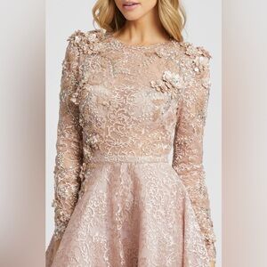 Embellished Illusion Long Sleeve A Line Gown - mocha Lace