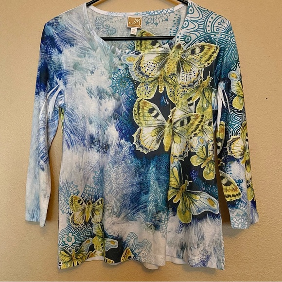 Light weight (not sheer) PM top by JM Collection. Like new condition, comfortable, and an eye catching addition to any closet.