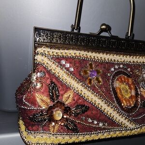 Elegant maroon handbag with intricate embellishments. Perfect for adding a touch of sophistication to any outfit.