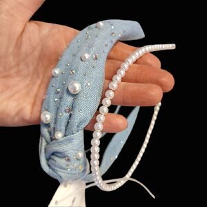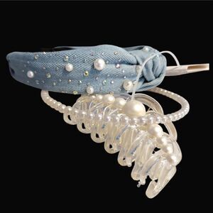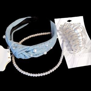 Embellished Pearl Denim Headbands And Clip Hair Accessories Bundle OF 3 NWT