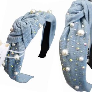 • Denim Top Knot Embellished Headband by Gem Bella, NWT