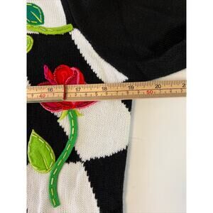 Embellished Red Roses Check Cardigan Sequin Size Small Black White Embroidery