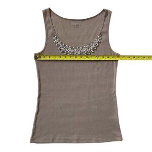 Embellished Rib Knit Cotton Tank Top — Taupe Stone Neutral Scoop Neck Size M