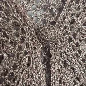 Perfect for a night out, Brunch, Complementary Statement Piece for a Cocktail This Cardigan Top features Metallic Thread and beads detail with a pretty button on front 3/4 sleeves Deep V-Neckline . Great Condition purple ish color