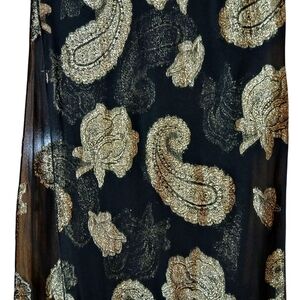 This luxurious scarf features a stunning gold and black color palette, perfect for cocktail events or a night out. The embellished details add a touch of elegance and sophistication to any outfit. Ideal for adding warmth and style, this accessory is a must-have for your wardrobe.