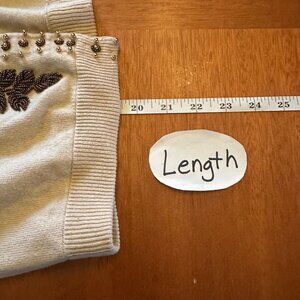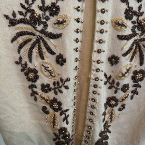 Embellished Silk & Cotton Cardigan Sweater With Beaded Floral Design By Moda Int