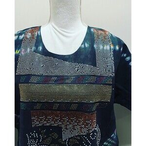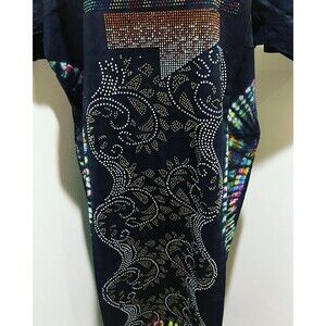 Make a statement at your next formal event with this stunning Swarovski stoned African Kaftan dress. The dress is made from high-quality cotton and features a beautiful tie-dye pattern, with accents of embroidery, rhinestone, embroidered, and sequin. The dress is a one-size-fits-all, with an adjustable pullover closure and collarless design.