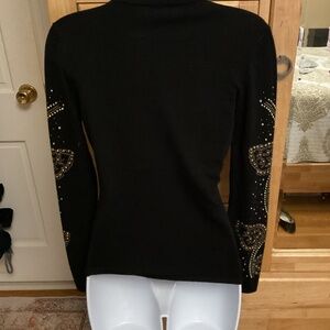 New w/o tags. Never previously worn. Black soft sweater with embellishment to up your game.