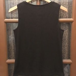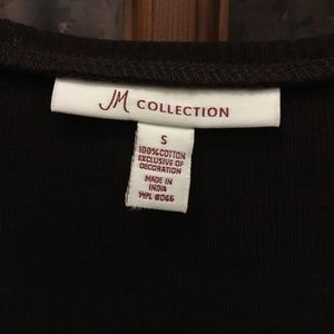 JM Collection Chocolate Brown tank top with beautiful beadwork, including wood, glass, and shells, on satin trim. This tank top is a size small, but has a lot of stretch. I normally wear a size large.