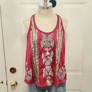 Maroon racer back top. Embellished with gold and silver sequins. Lightly worn. Size medium.