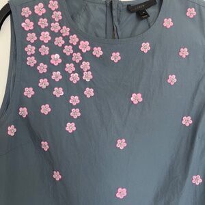 Gray j crew top embellished with pink flowers