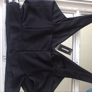 Black crop top, openings on the sides, Vneck, zipper on the back! It's beautiful on and the material it's really nice and comfortable!