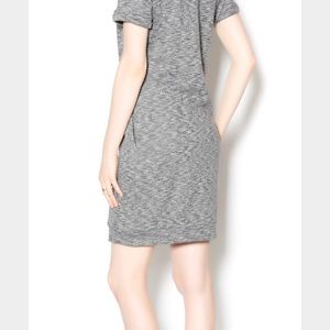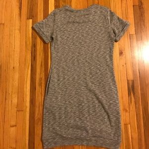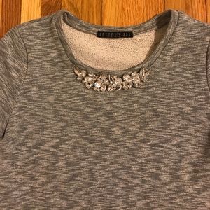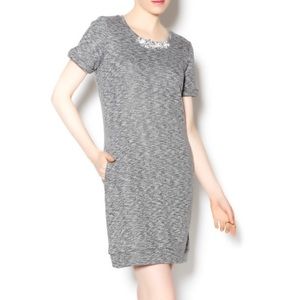 Make a comfortable statement in the grey cotton sweater dress with an embellished neckline. It even has pockets! Worn once.. excellent condition
