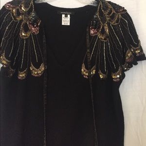 Embellished knit dress with sequins and heading on the should and sleeve