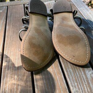 Very comfortable and stylish sandals to add some bling to your wardrobe. Good condition! Three straps at the ankle and a zipper up the back.