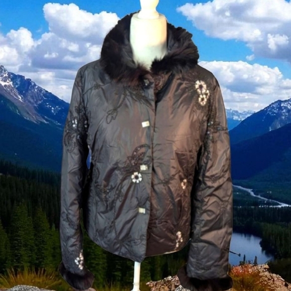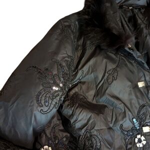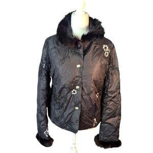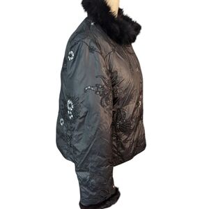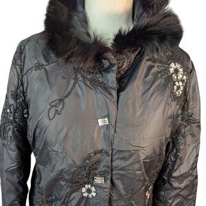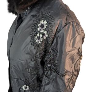 Embellished sequin embroidery faux fur trim black Warm Jacket Todd Smith Sz M