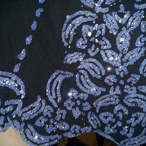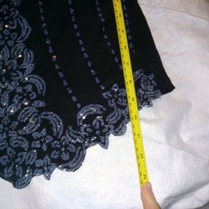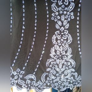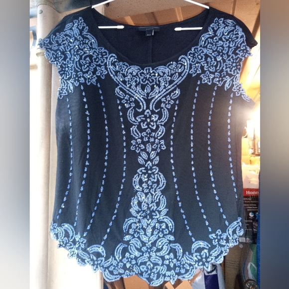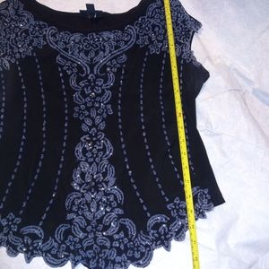Embellished top female adult size large. Short sleeve, solid color back, front all over embellishment. Good used condition no holes,rips or tares