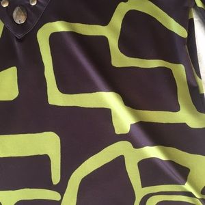 Brown and green embellished tunic. Stretch fabrics. Very comfortable. Gently worn.