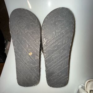 Step out in style with these embellished black and teal sandals. Perfect for adding a touch of elegance to any outfit.