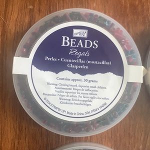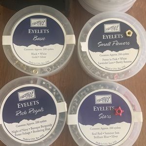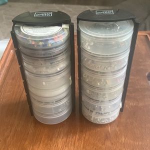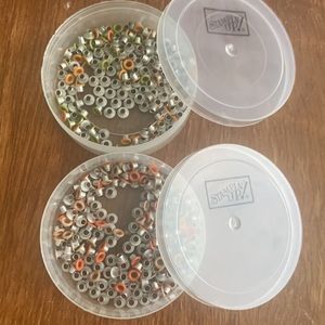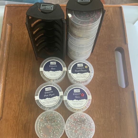 Stampin’Up! Set of two containers holding 15 packages of Eyelets, beads and one package of buttons.
