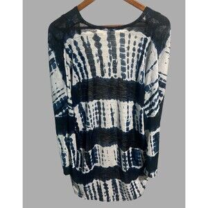 Ember Cardigan Women’s Large Long Tunic 3/4 Sleeve Blue White Tie-Dye Boho Top