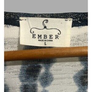 Ember Blue White Tie-Dye Open Front Cardigan Womens Large 3/4 Sleeve Boho