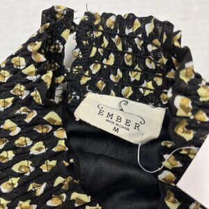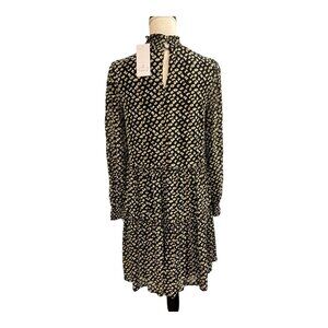 Ember Dress Womens M Black Chiffon Metallic Tiered Smocked Mini High Neck Event