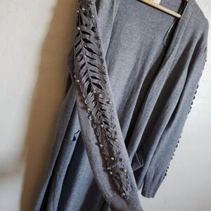 Ember Gray Open Front Cardigan Sweater With Beaded Sleeve. Size M.
