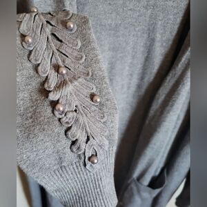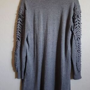 Ember Gray Open Front Cardigan Sweater With Beaded Sleeve. Size M.