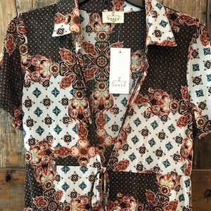 Classic style with a collar, cap sleeves, front tie!