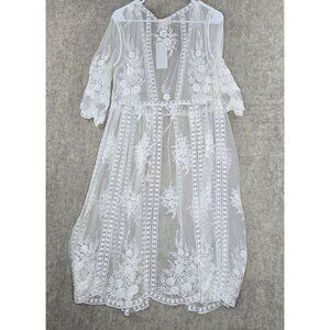 Ember White Floral Embroidered Lace Kimono Cardigan With Tie Closure