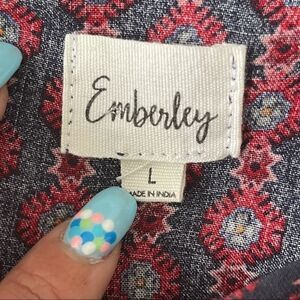 Emberly Red & Blue Print Layered Bell Sleeves Shift Dress Size L