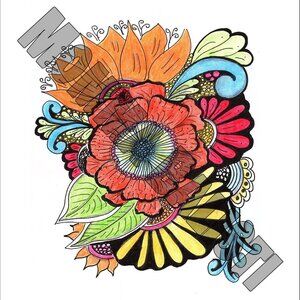 Vivid, fiery, and full of life — the “Emberly” design by Momma Balisti glows with warmth and energy. Hand-drawn in rich shades of red, orange, yellow, and blue, this piece bursts with floral movement and intricate Zentangle-inspired detail. Every petal and curve is alive with texture, blending bold color with delicate artistry — the perfect balance of strength and beauty.