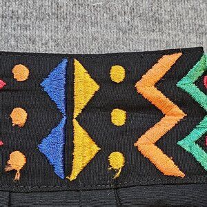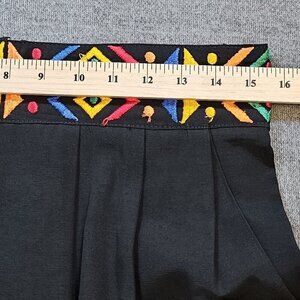 Emblem Pants Women 16 Black Waist Embroidery Tribal Elastic Zip Pleated Boho VTG