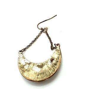 Embossed Brass Crescent Shaped Dangle Earrings Rhinestone & Coral Beads