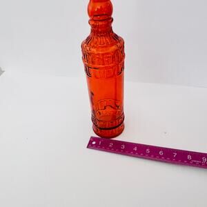 Embossed Design Orange Colored Glass Bottle with Stopper Round EMPTY