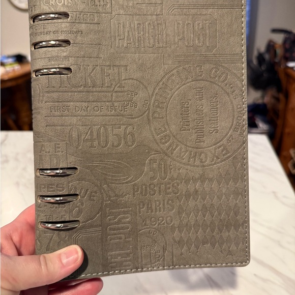 Stylish embossed planner notebook in gray. Perfect for organizing your schedule.