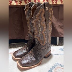 Squares toed chocolate brown embossed leather Tanner Mark boots. Excellent used condition, hardly worn. Size 7.5