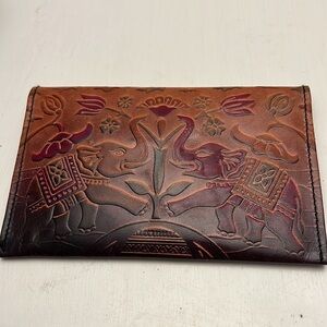 Here is a Embossed Leather Elephant Clutch Purse with Matching Change Purse in unused condition