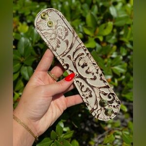 Beautiful handmade wide leather embossed cuff. Exquisite design and craftsmanship. Brand new boutique item. 2 inch width and 9 inch length.