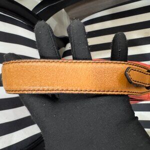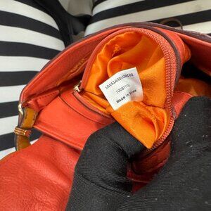 This beautiful peach MCM handbag is crafted from leather, and features a vibrant orange color. It measures 20cm in height, 32.5cm in width, and 3cm in depth, making it a practical choice for daily use. The handbag is designed for versatility, functioning as a 2-way shoulder bag.