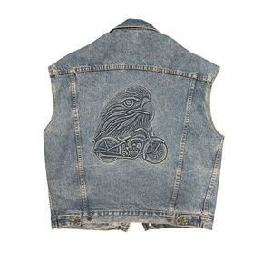 Embossed Motorcycle Eagle Blue Denim Vintage Jean Jacket Tyca USA Union