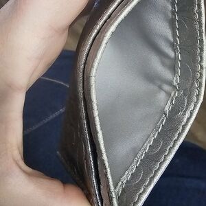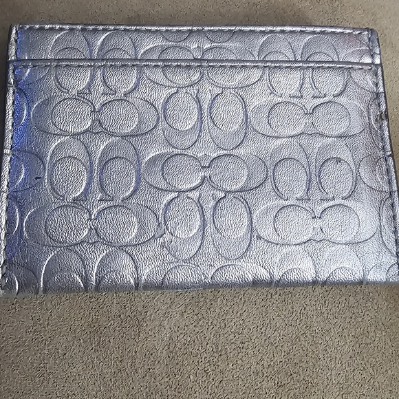 Elegant silver card holder with embossed pattern. Ideal for organizing cards. one wear mark on back