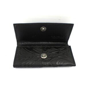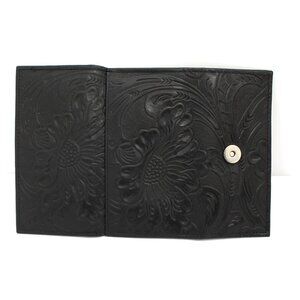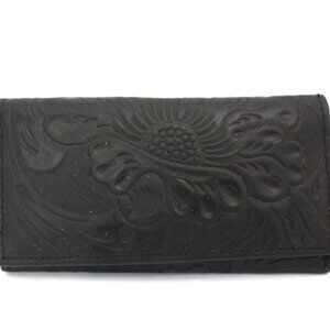 Embossed Tooled Black Leather Wallet Trifold Organizer Women's Made in Mexico