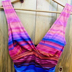 Embrace Your Curves by Miracle Brand Ombre Striped 1-Piece Swimsuit Size Medium